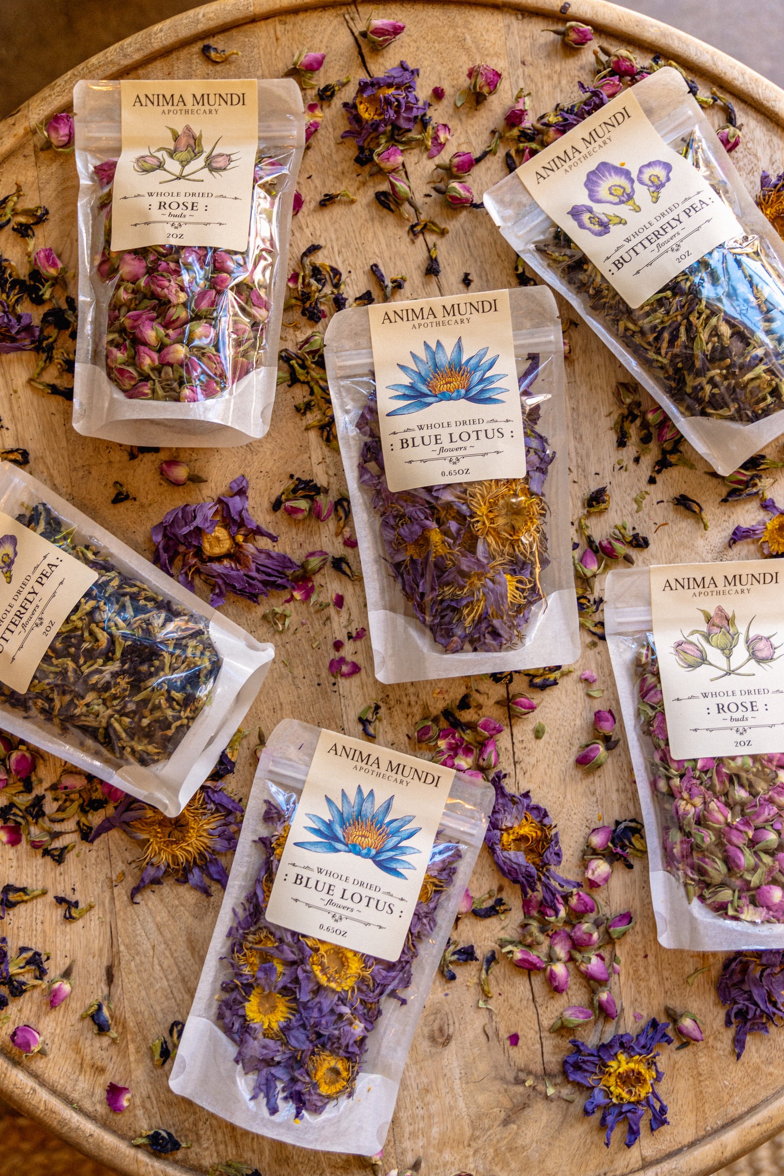 In honor of the blooming season, we welcome three whole flowers into your rituals. Moroccan Rose, Butterfly Pea, and Blue Lotus offer a soft and sensory way to move with the rhythms of the season, inviting beauty, calm, and gentle transformation into your daily practices.