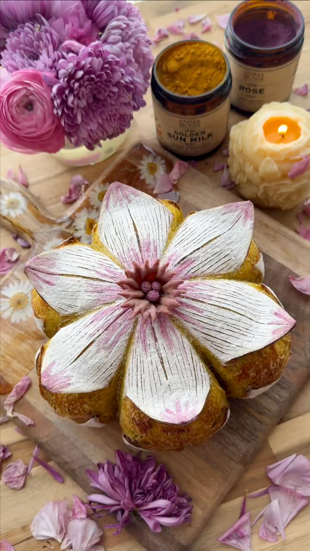 For a special touch, top your loaf with a handcrafted flower cup—a simple dough infused with Rose and purple sweet potato powder. It’s a beautiful, functional way to bring a little plant-powered artistry to your table.