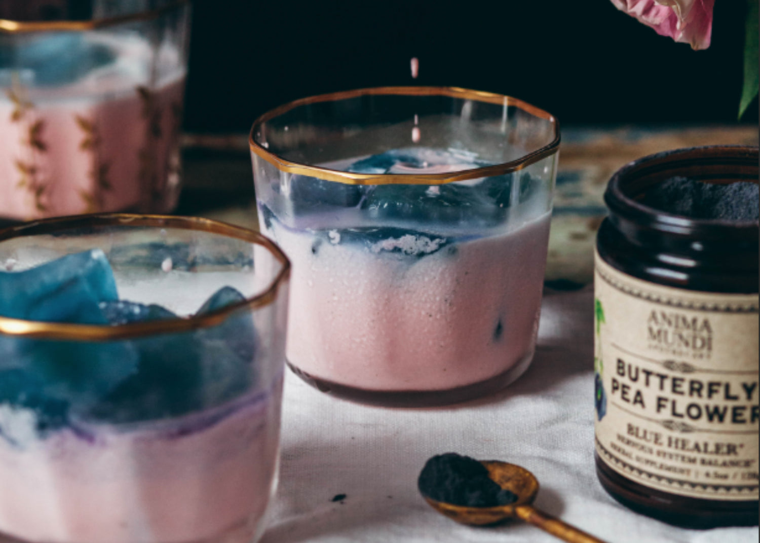 DIRECTIONS: (Several hours before making) Freeze Butterfly Pea Flower tea in beautiful ice cube trays. Then, blend 1 tsp Rose powder in 6oz of Coconut Milk (or milk of choice). Add sweetener if desired. Plop ice cubes into latte. Enjoy!
