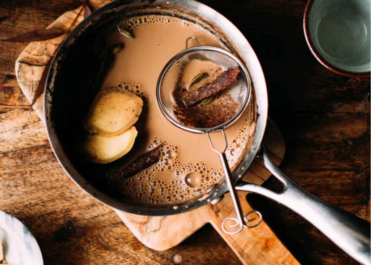 DIRECTIONS: Bring water and milk to a simmer with spices in a medium saucepan.  Reduce heat to lowest setting and add tea. Steep until tea takes on a deep, pinky-tan color, about 3 min, stirring occasionally.  Strain into a cup and stir in sugar to taste. Recipe by Jennifer Pallian